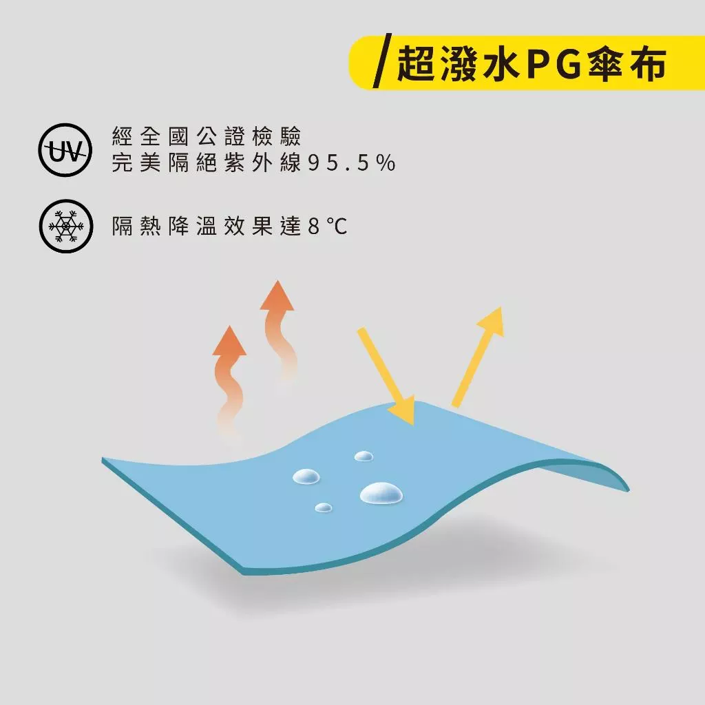 傘布:95.5%抗UV|超潑水府綢布