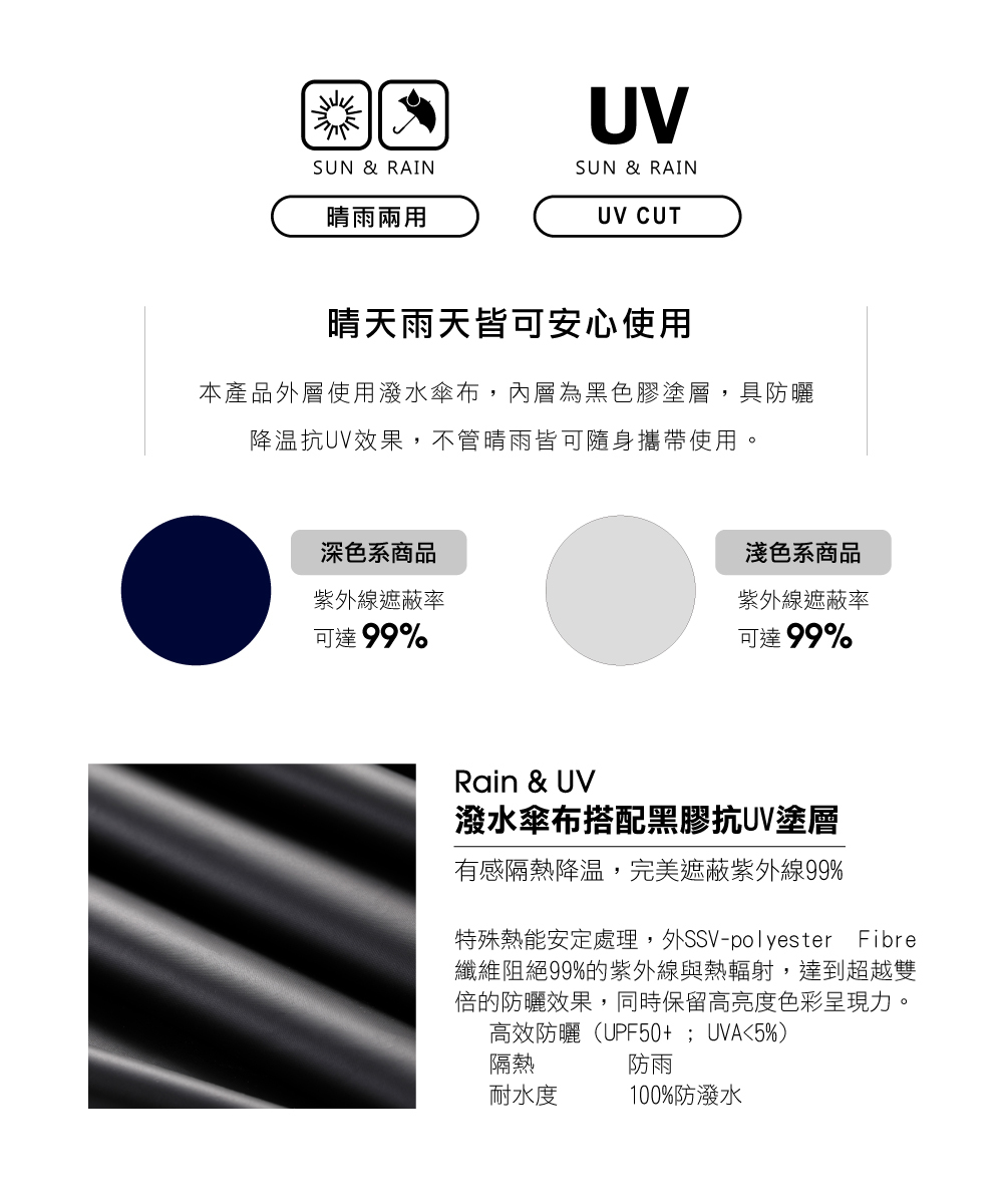 – 全天候機能,晴天不怕曬、雨天不濕身,一傘搞定!