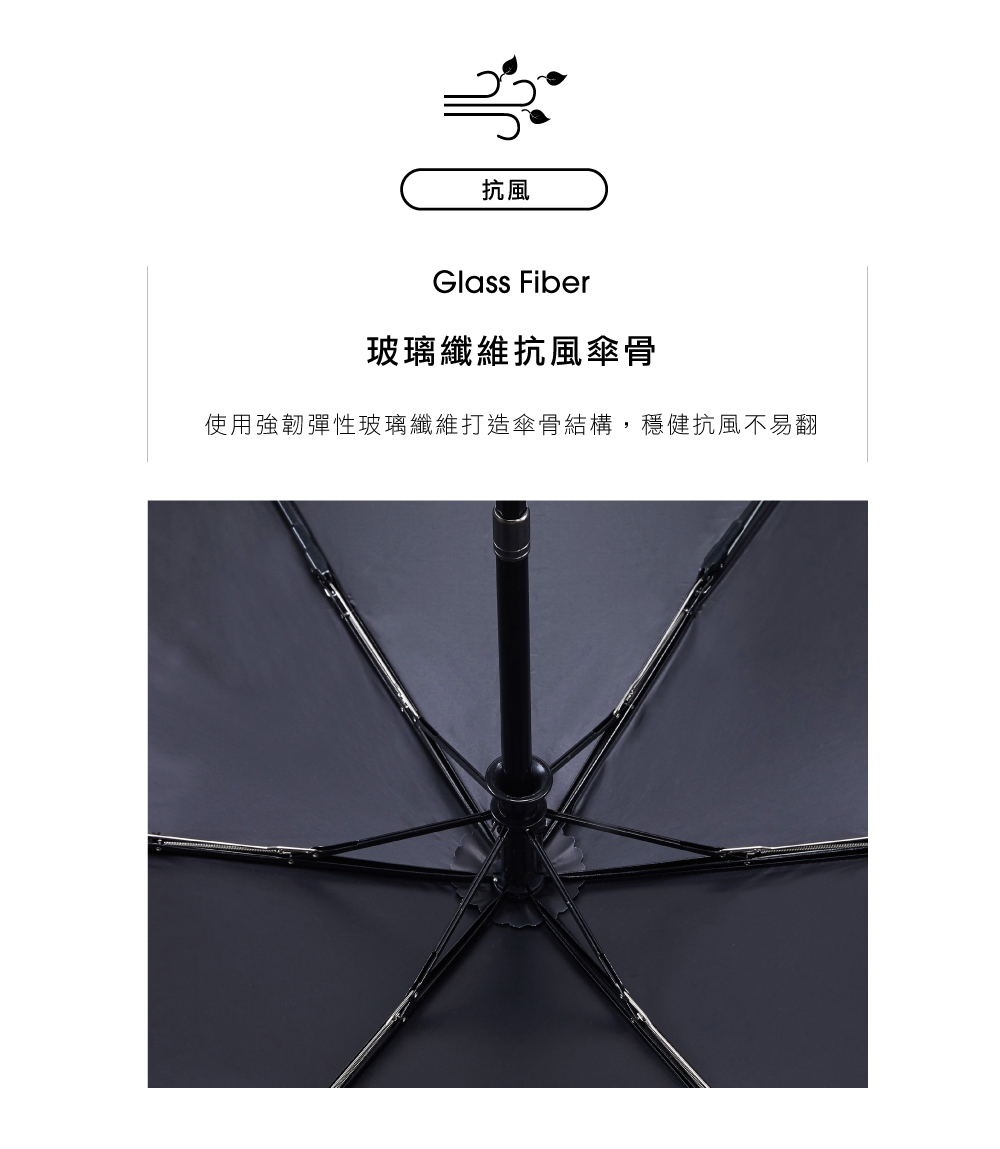 – 傘骨採用高韌性玻璃纖維,風大也不易翻傘,堅固又耐用。