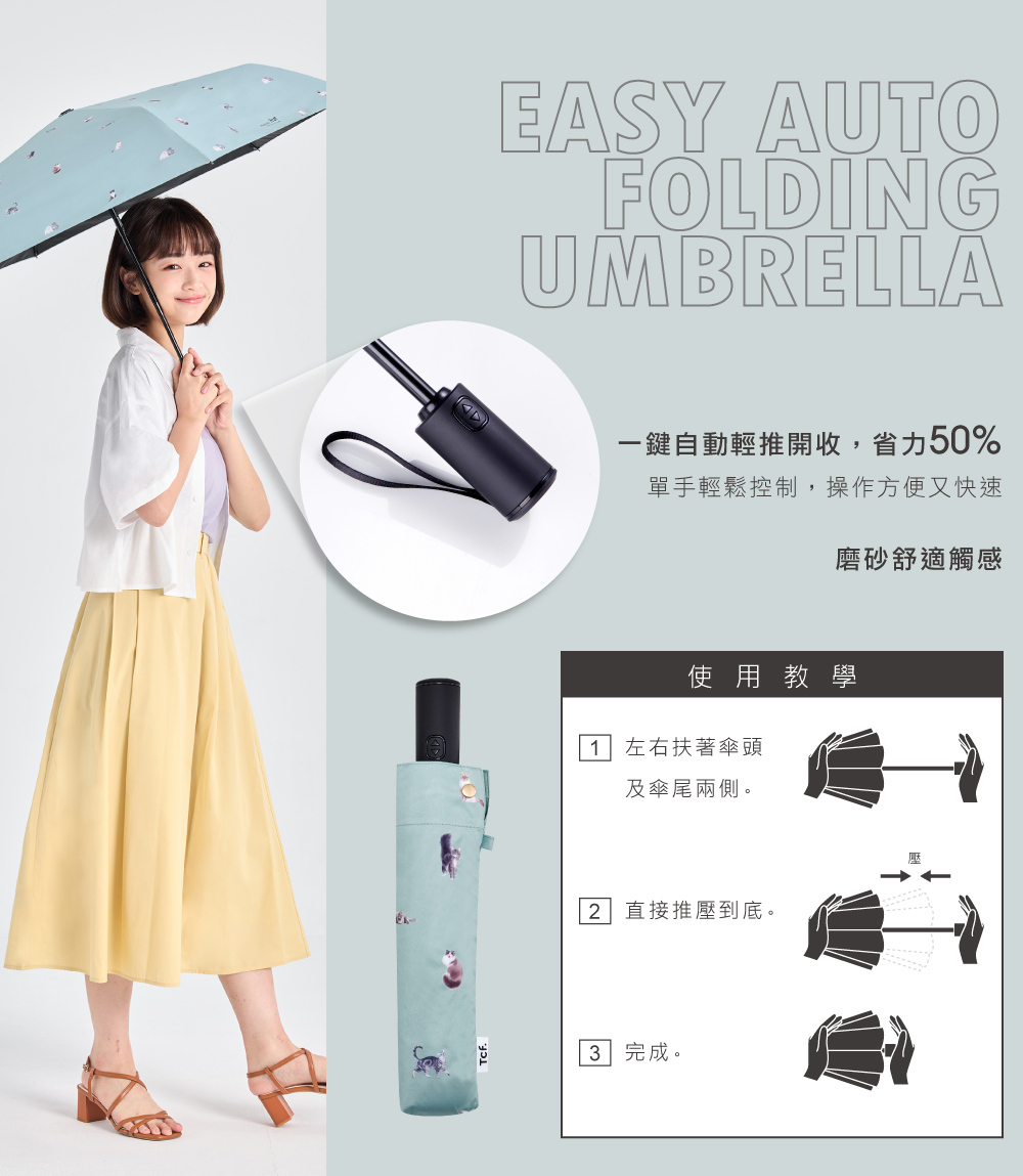 全場自動最省力|萌貓百科 全遮光 抗UV省力自動開收傘