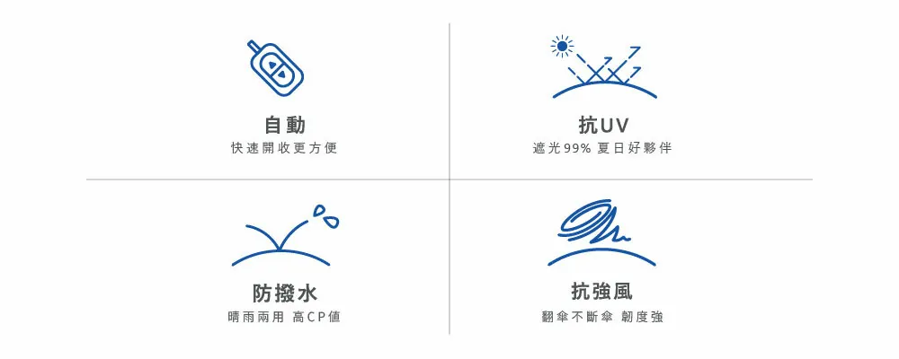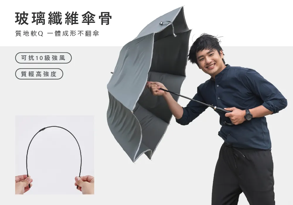 8骨結構搭配玻璃纖維,確保傘骨堅固耐用,不易變形,不用擔心開花問題。