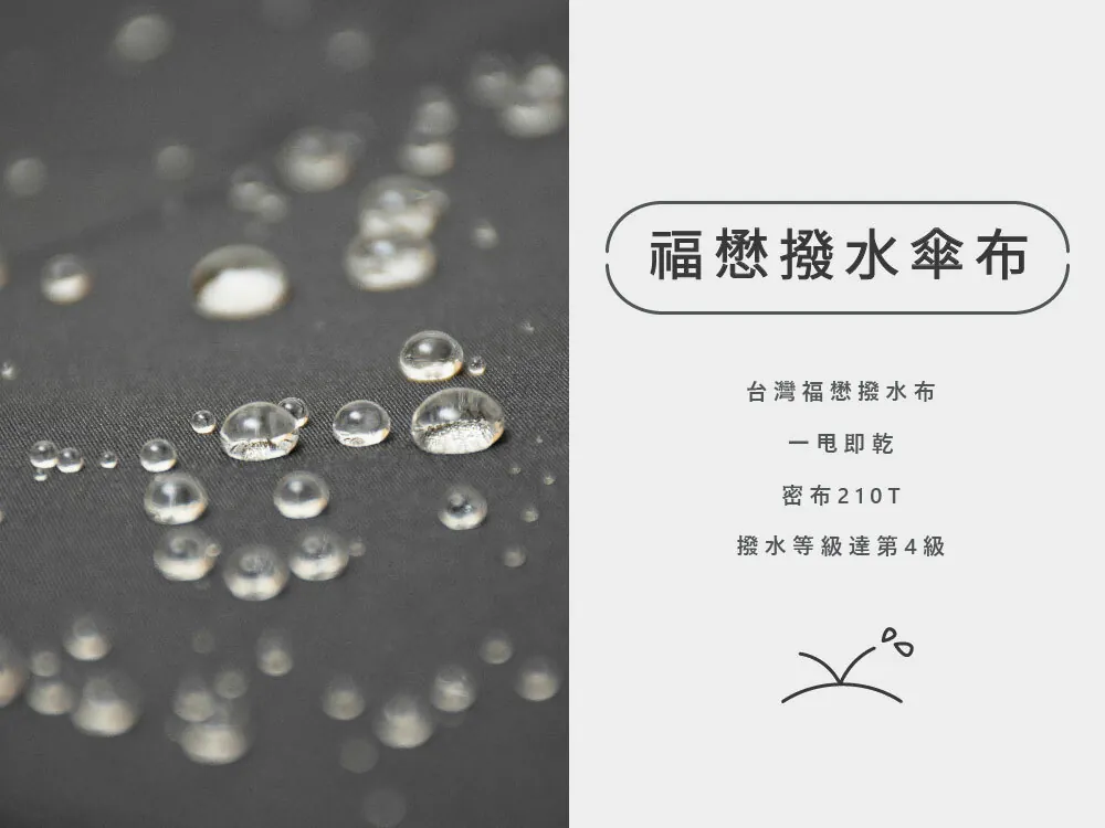 台灣材料品質,安心使用,擁有優越的潑水性能,讓雨水完全滑落,保持雨傘乾爽。