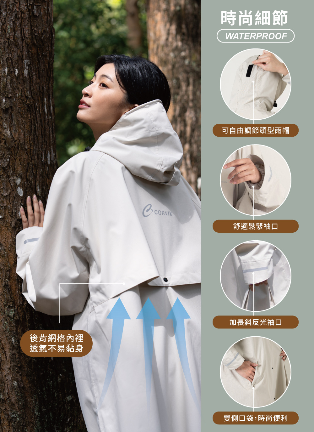 不再為天氣猶豫不決,一件「CORVIX純粹本質風雨衣」搞定日常通勤、出遊露營與午後陣雨!風格與機能兼具,是你穿搭與實用的完美平衡。