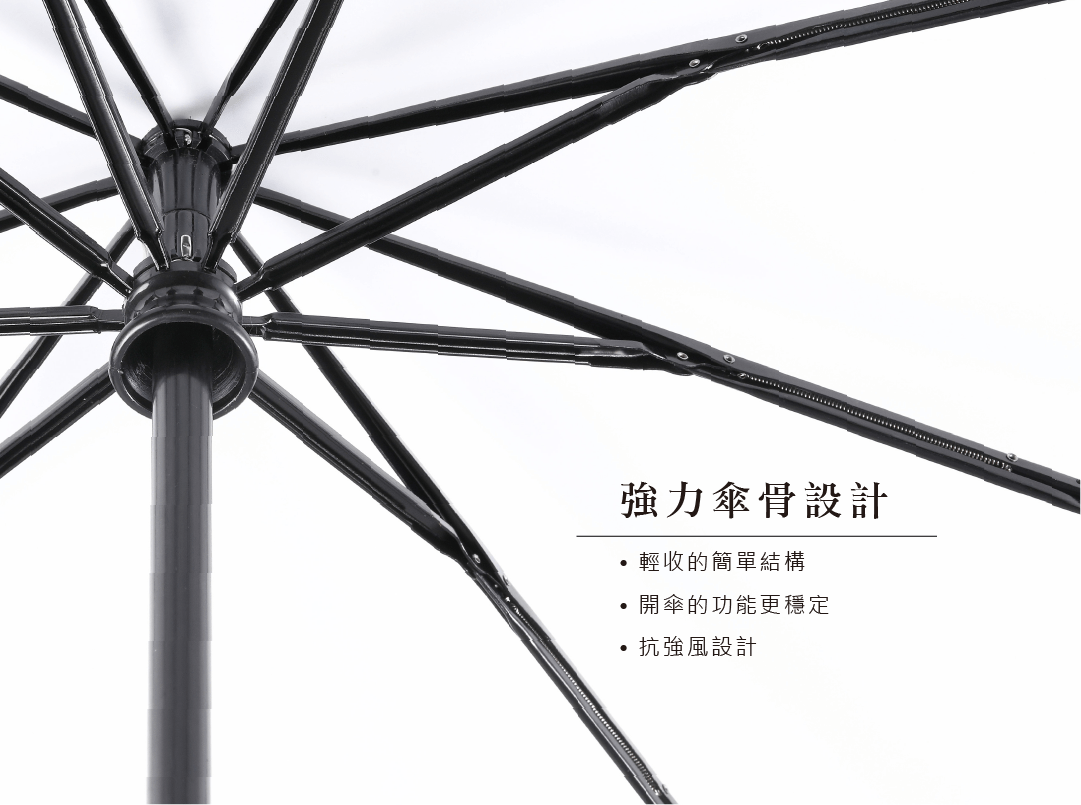 使用方式: 按下自動開關鍵,即可順利開啟傘面,收傘時,再按一次自動開關鍵,收起傘面