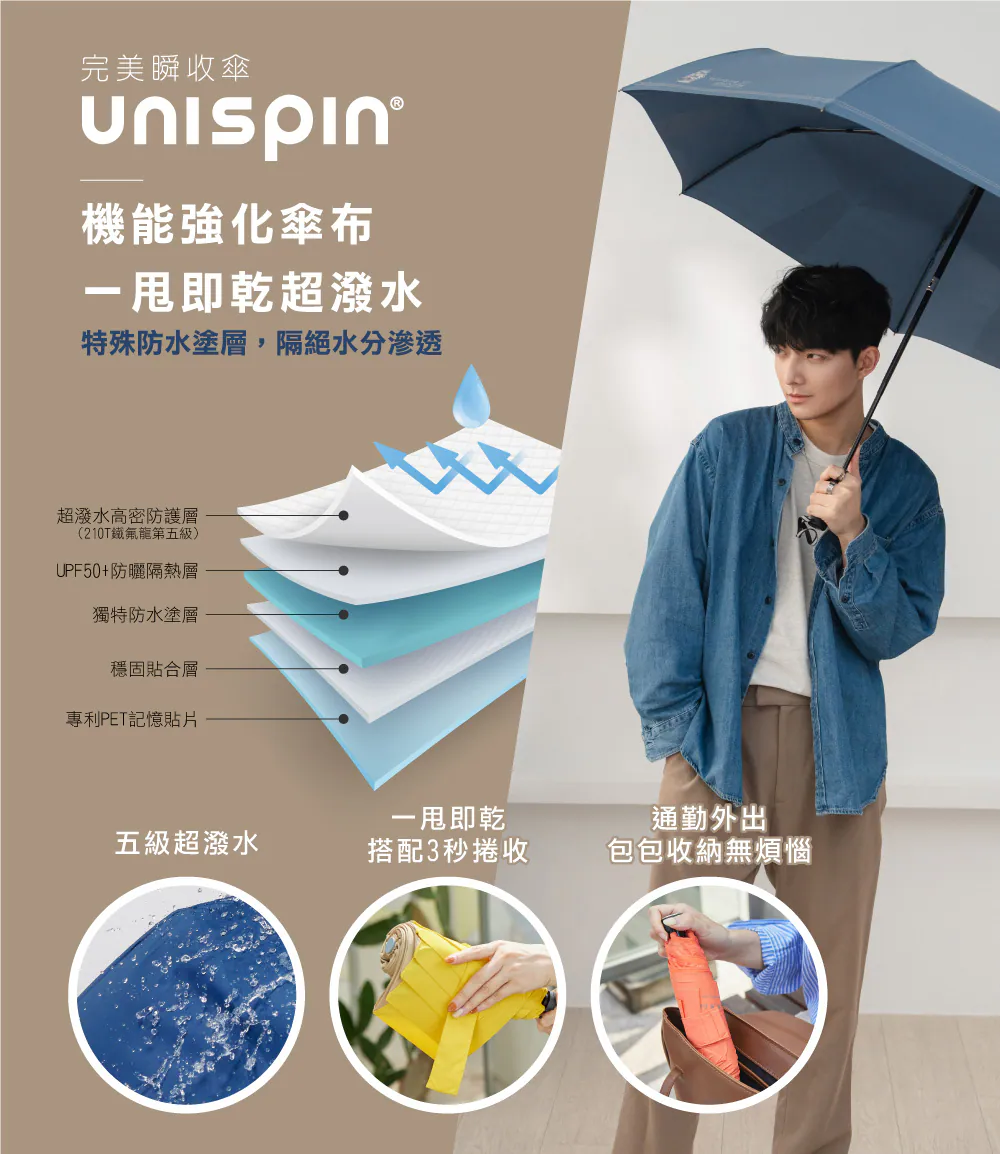 Unispin 冒險航道|27吋大傘面 輕推自動完美瞬收傘